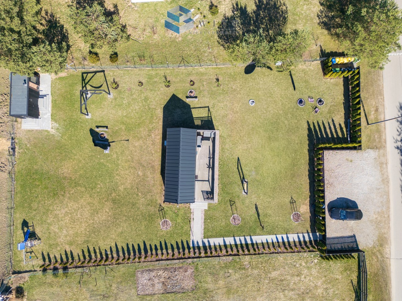 Ogromnym atutem tej nieruchomości jest również sam teren. Działka jest pięknie zagospodarowana, zadbana i gotowa do korzystania od pierwszego dnia. Na posesji znajduje się: