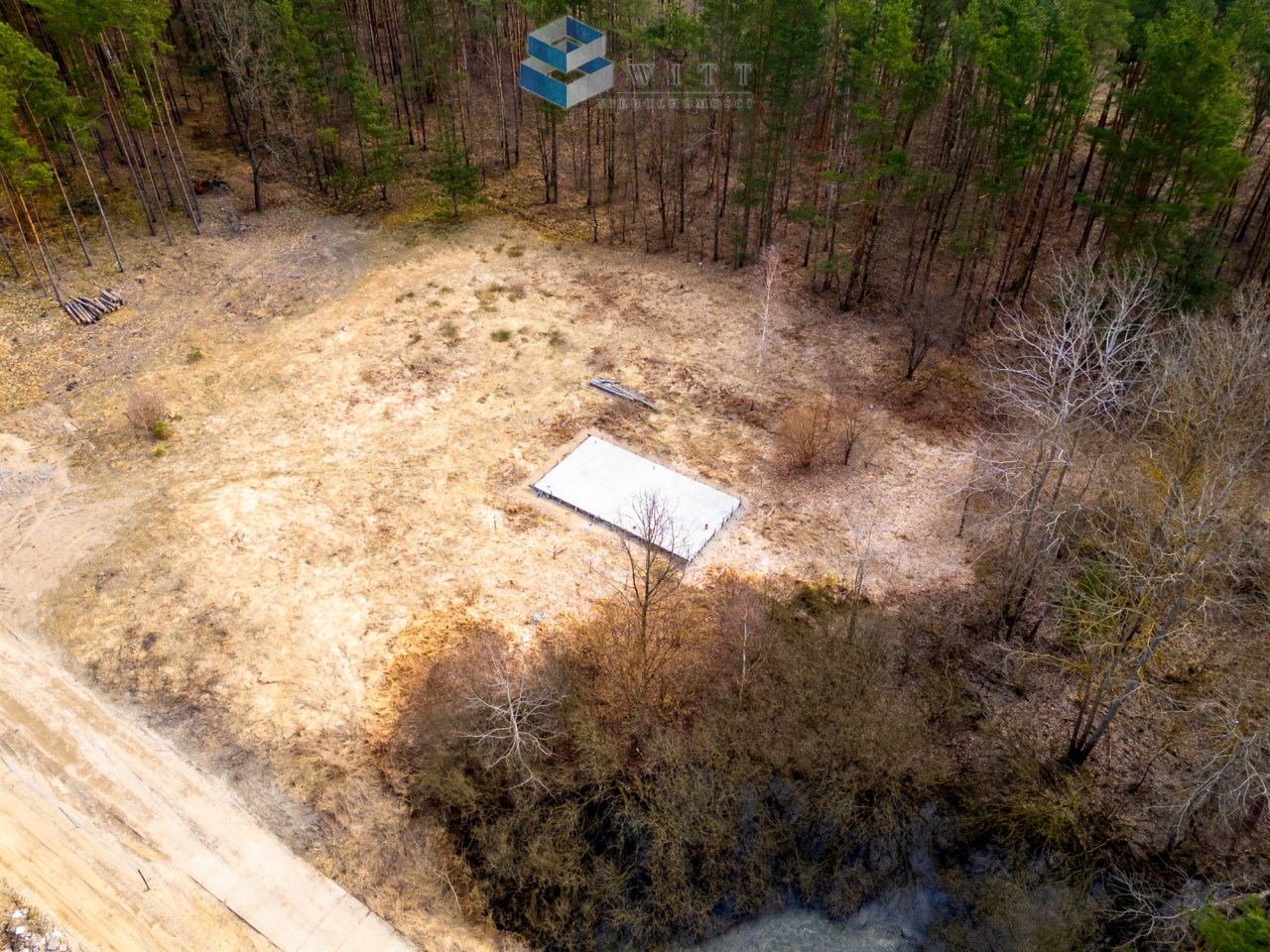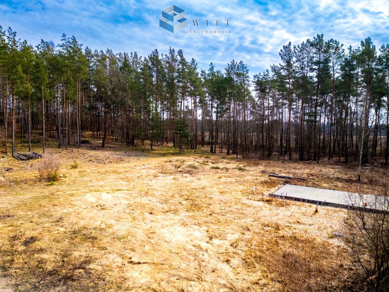 Sama działka również ma ogromny atut: teren jest równy, co daje wygodę przy dalszej realizacji inwestycji i zagospodarowaniu przestrzeni. Dodatkowo nieruchomość otoczona jest lasami, dzięki czemu to miejsce daje coś, czego dziś szuka coraz więcej osób — ciszę, prywatność i prawdziwy oddech od codziennego tempa.