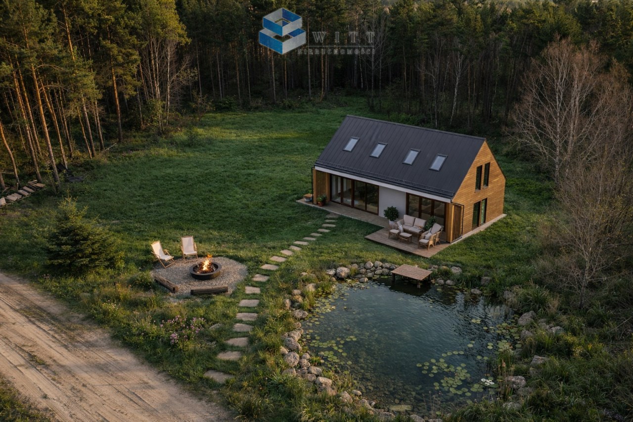 Co więcej, działka daje również możliwość stworzenia prywatnego stawu, co jeszcze mocniej podkreśla jej wyjątkowy charakter i pozwala zbudować tu przestrzeń naprawdę skrojoną pod własny styl życia. To nie jest zwykła działka pod budowę. To miejsce, w którym można stworzyć własny azyl — z domem, zielenią i prywatną przestrzenią do odpoczynku.
