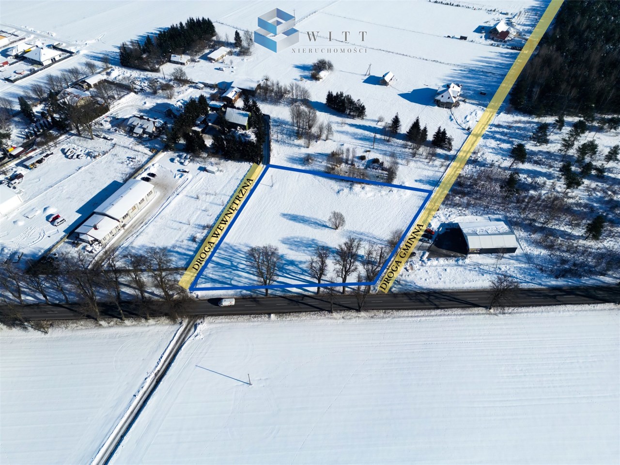 - Istniejące, dwa legalne zjazdy z drogi wojewódzkiej: możliwość wjazdu z drogi gminnej lub drogi wewnętrznej