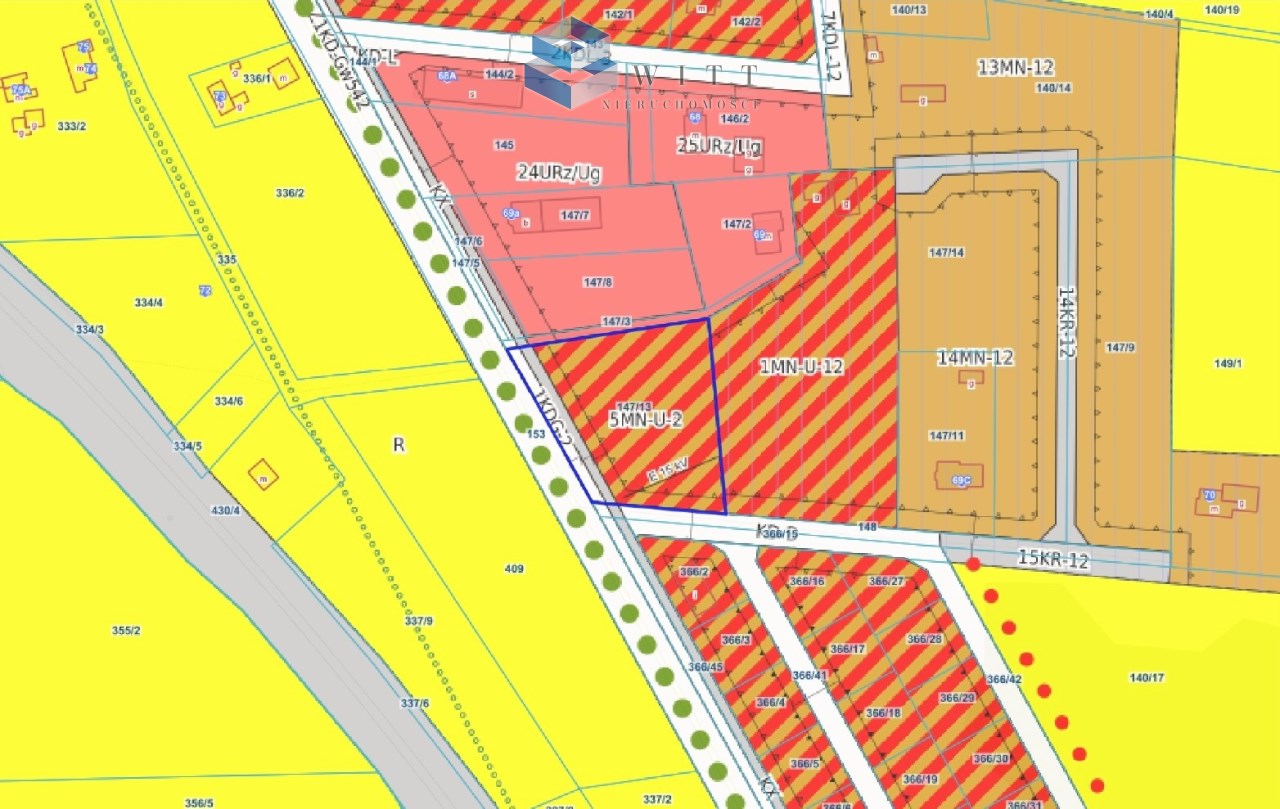 - Teren 5MN-U-2 – zabudowa mieszkaniowa jednorodzinna lub usługowa