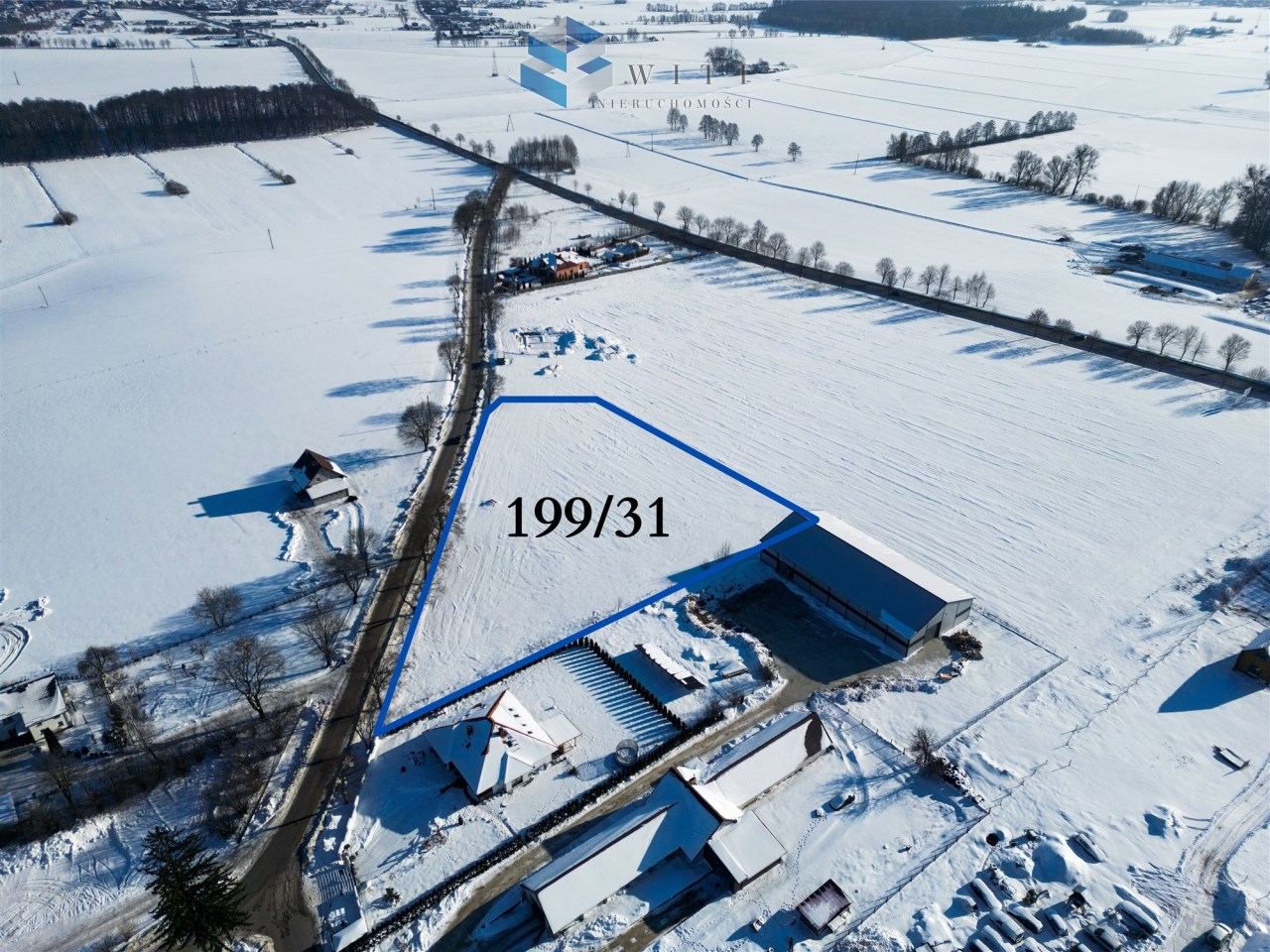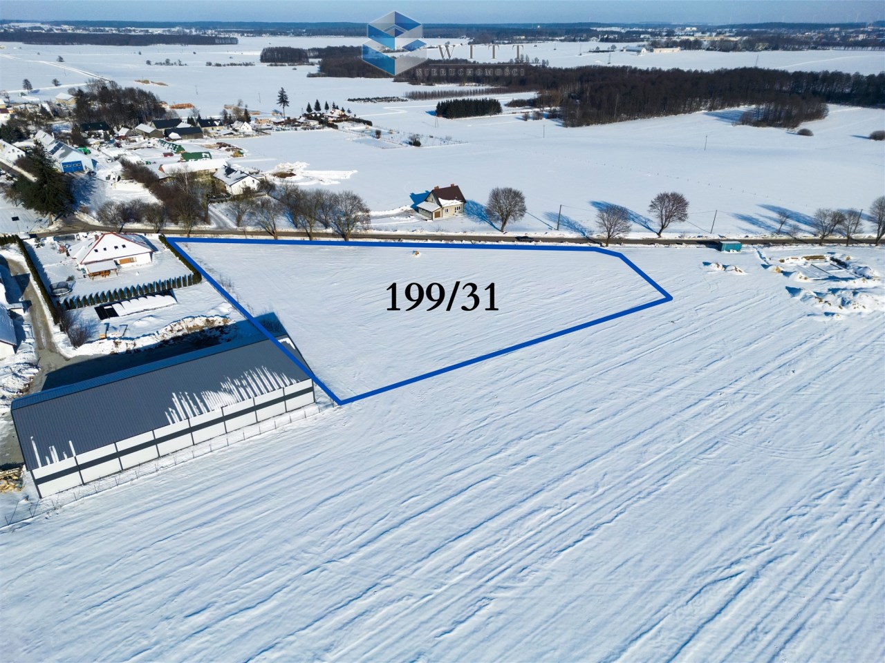 Działka nr 199/31 o powierzchni 7635 m² położona jest w Pierławkach (gmina Działdowo). Ma 134 metry frontu przy drodze gminnej – to ogromny atut przy planowaniu zjazdu, placu manewrowego i ekspozycji firmy.