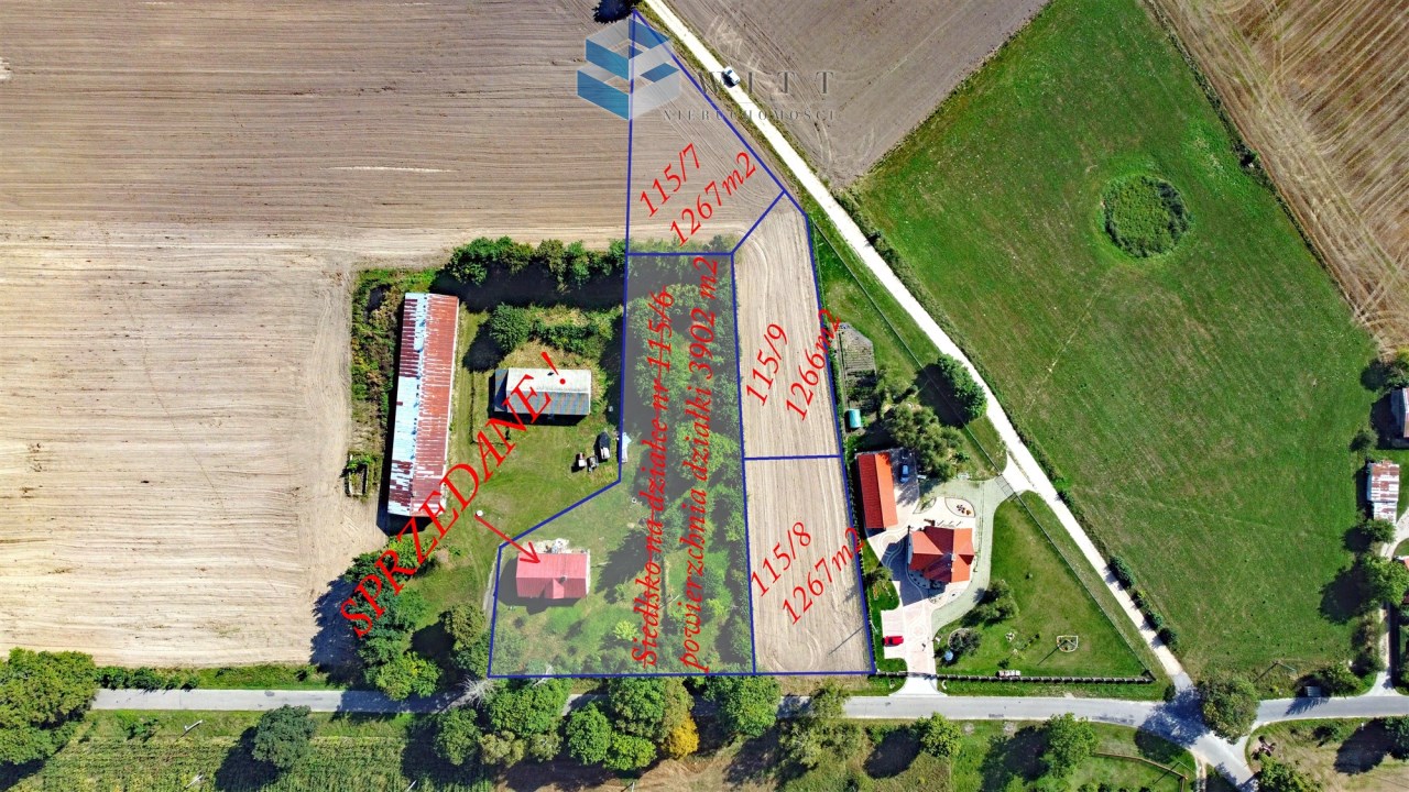 - działka nr 115/8 o pow. 1267 m2 ze zjazdem z drogi asfaltowej,