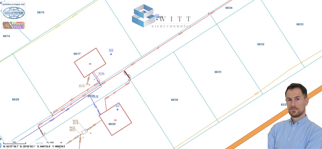 Działka nr 68/32 – powierzchnia 868 m², cena 88 zł z 1 m2.